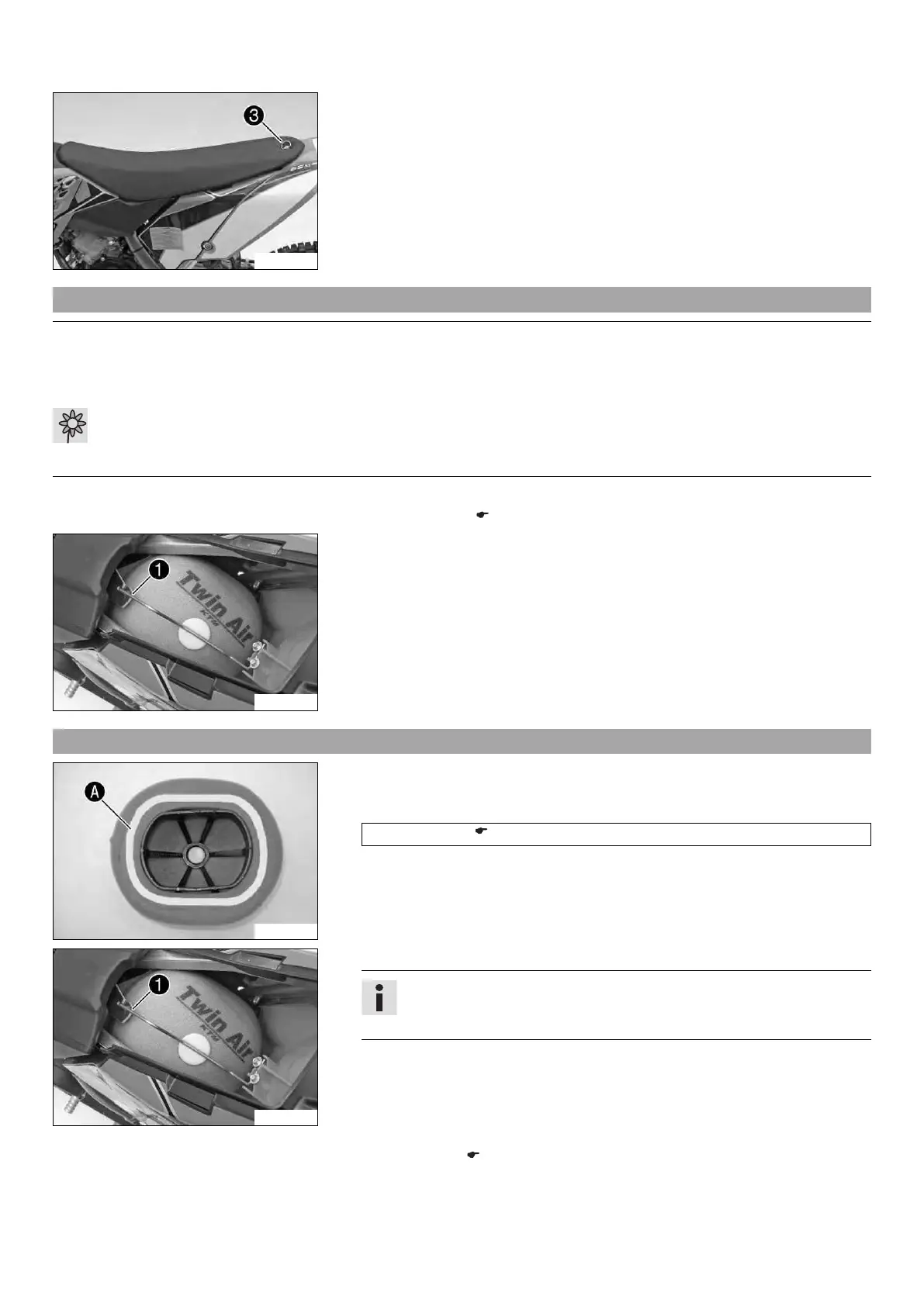 – Grease the air filter in area A.