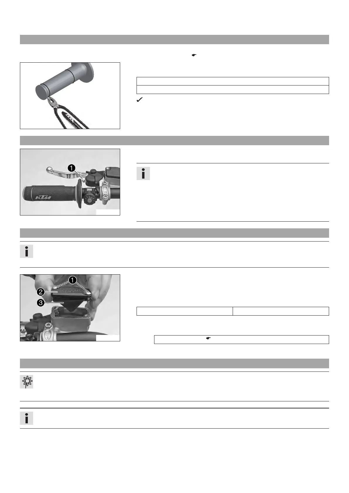 – Move the clutch fluid reservoir mounted on the handlebar to a horizontal position.