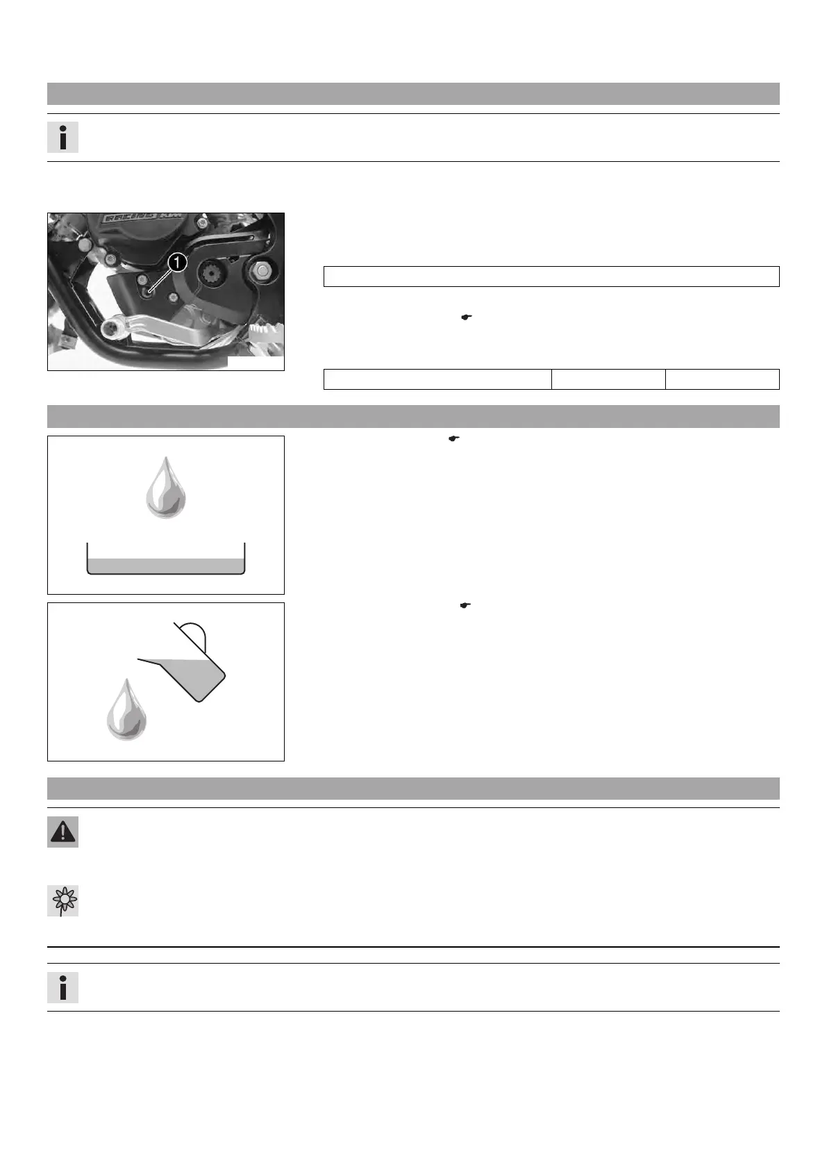 Danger of scalding Engine oil and gear oil get very hot when the motorcycle is ridden.