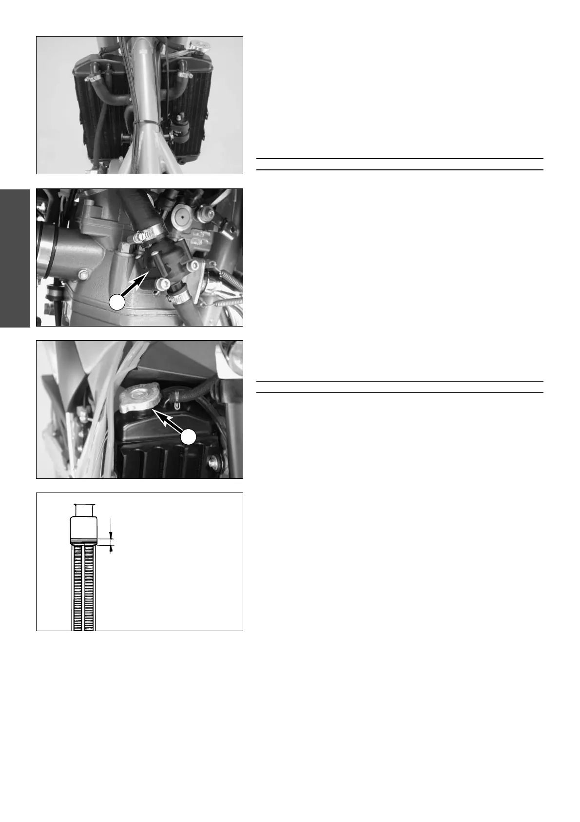 The coolant should be 10 mm (0,4 in) above the radiator fins when the