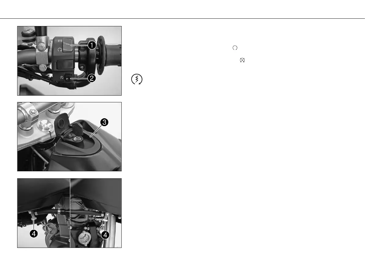 Use the starter tip switch [2] to operate the electric starter.