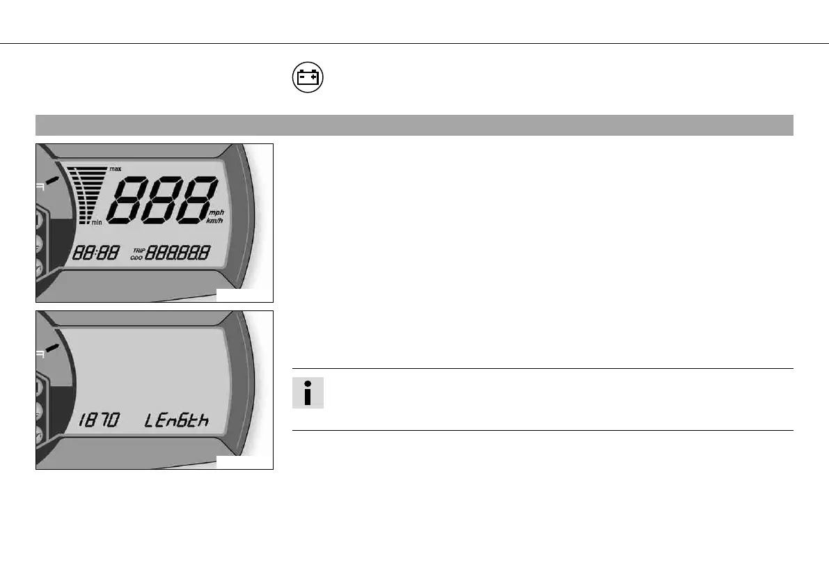 Following the display function test, the wheel circumferenceLEnGth is shown for one sec-