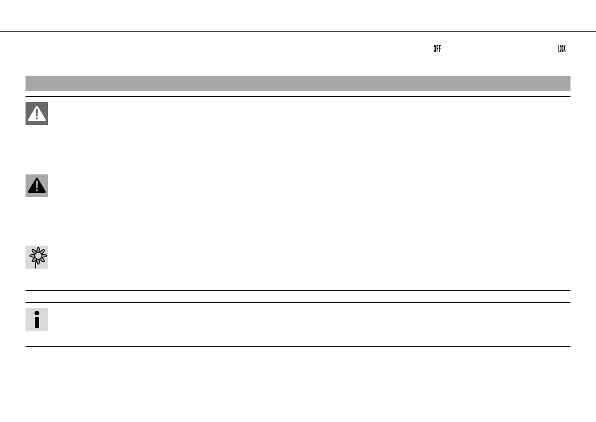 – Lock the steering by moving the handlebar to the left, pressing down the ignition key in the position and turning it to the position .