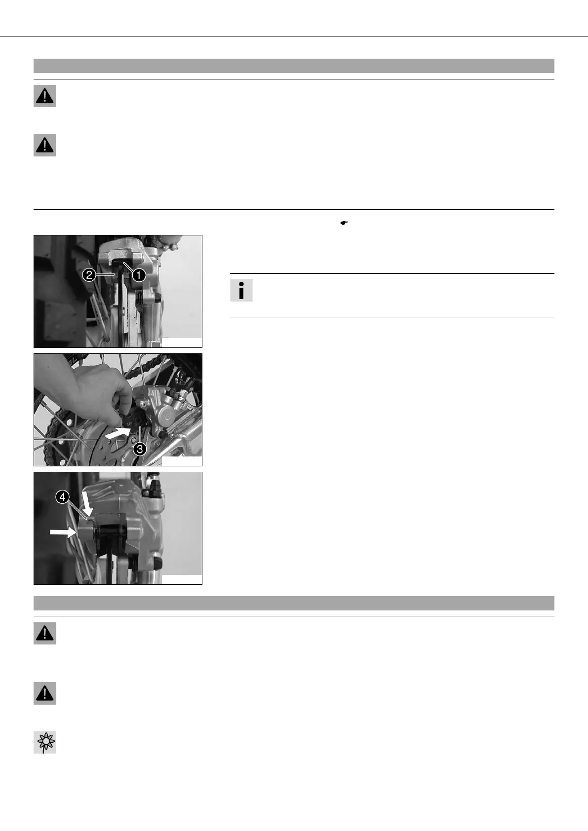 – Operate the foot brake lever repeatedly until the brake linings lie on the brake disc