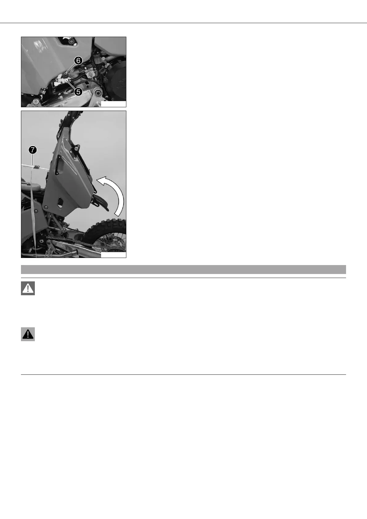 – Fold the rear tank upward in the direction of the arrow and use a belt to secure