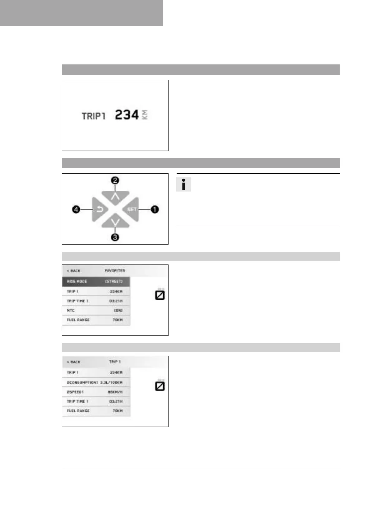 – Press the UP or DOWN button until the Trip 1 menu is marked