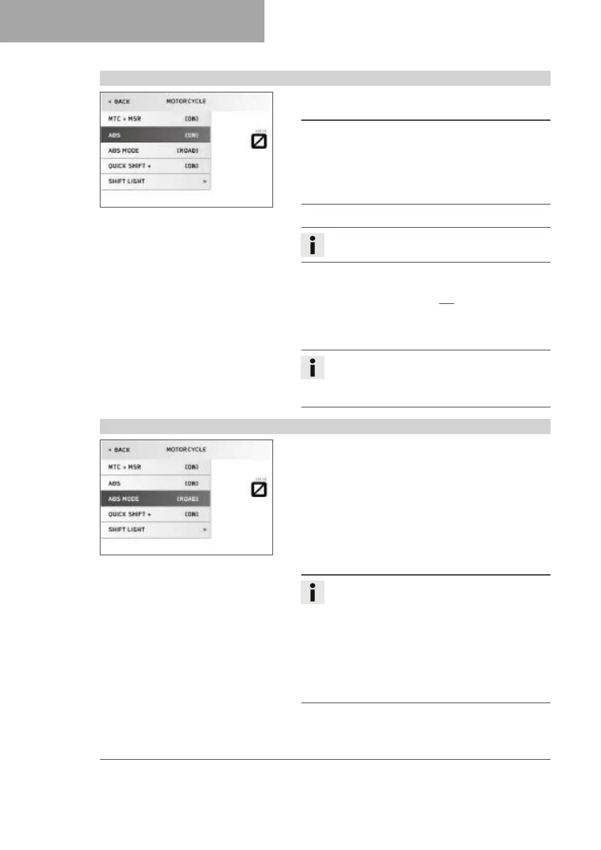 If the ABS mode Supermoto is enabled, ABS only con-