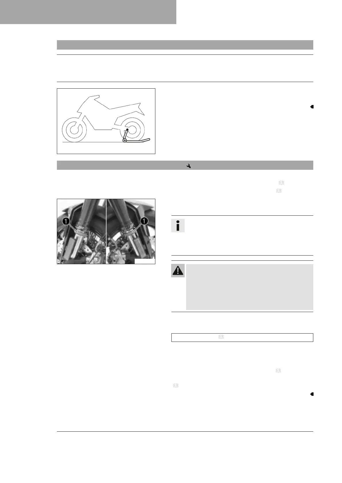 – Lift the motorcycle with the front lifting gear. ( p. 61)
