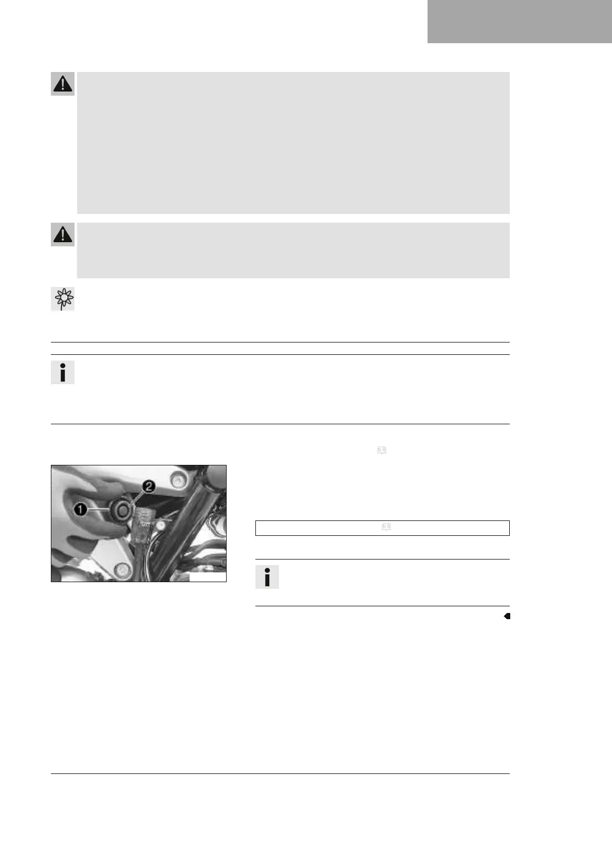 – Make sure that brake fluid for the front and rear brake is changed in accordance with the service