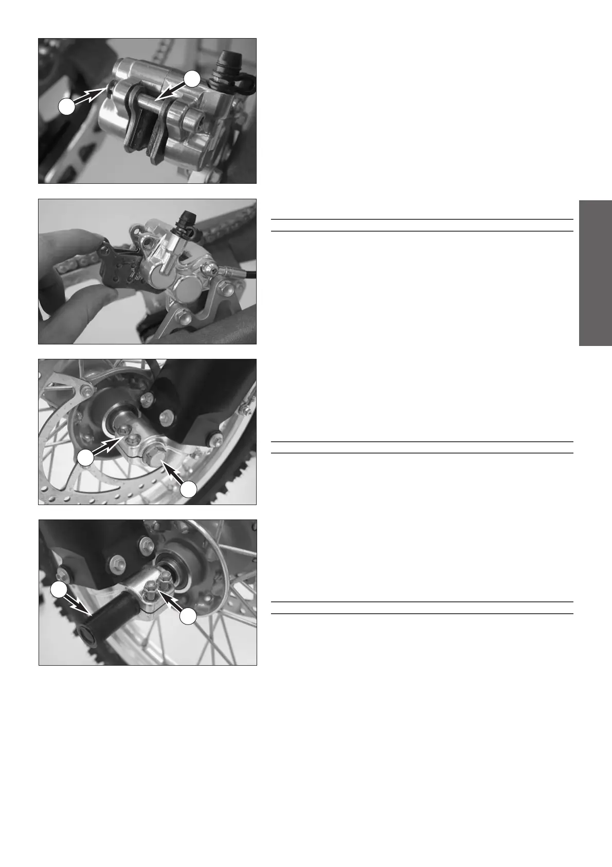caliper with a drift towards the chain wheel and remove the brake pads.