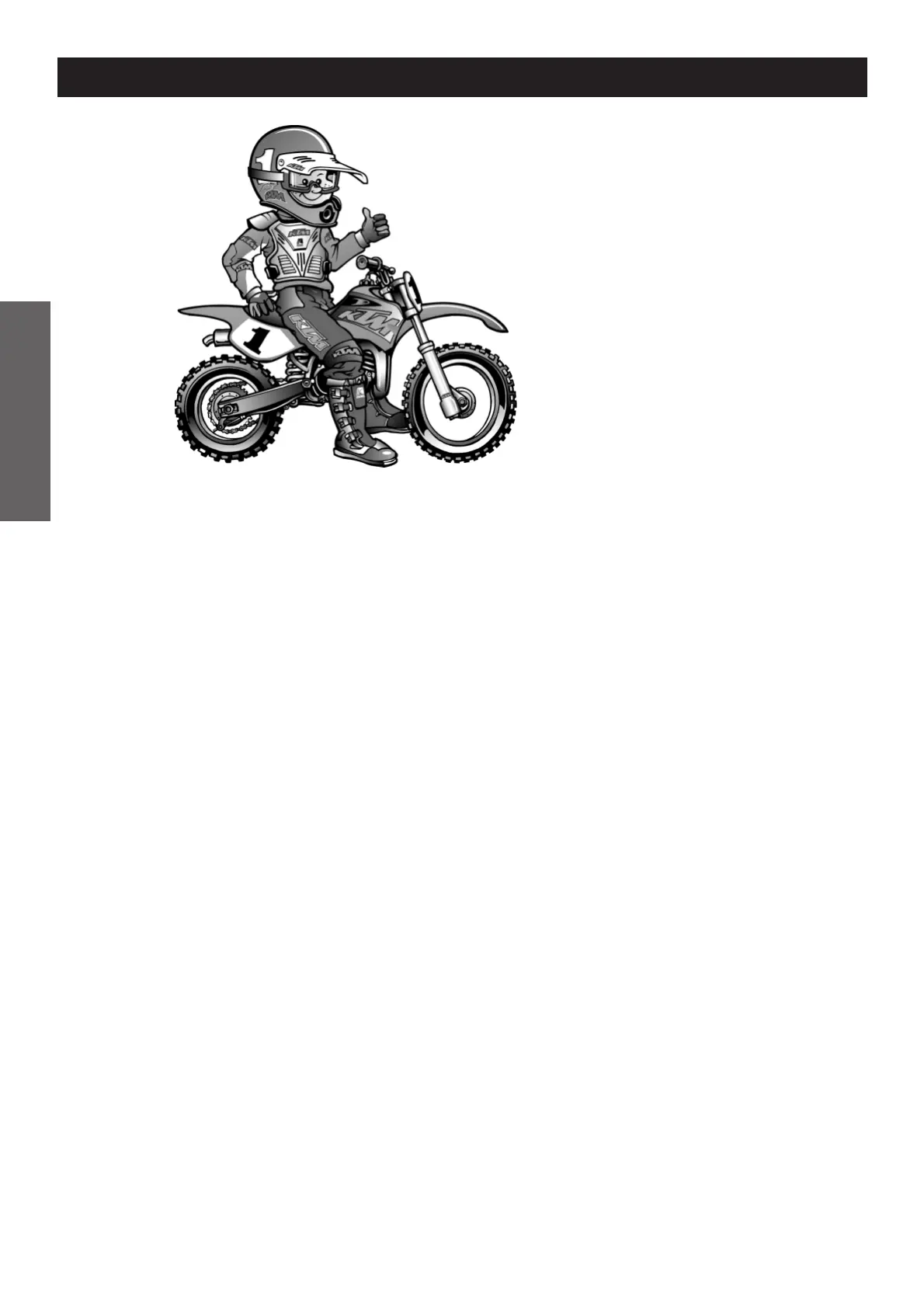 – The motorcycle is designed for one rider only. Your youngster is not allowed to transport a passenger.