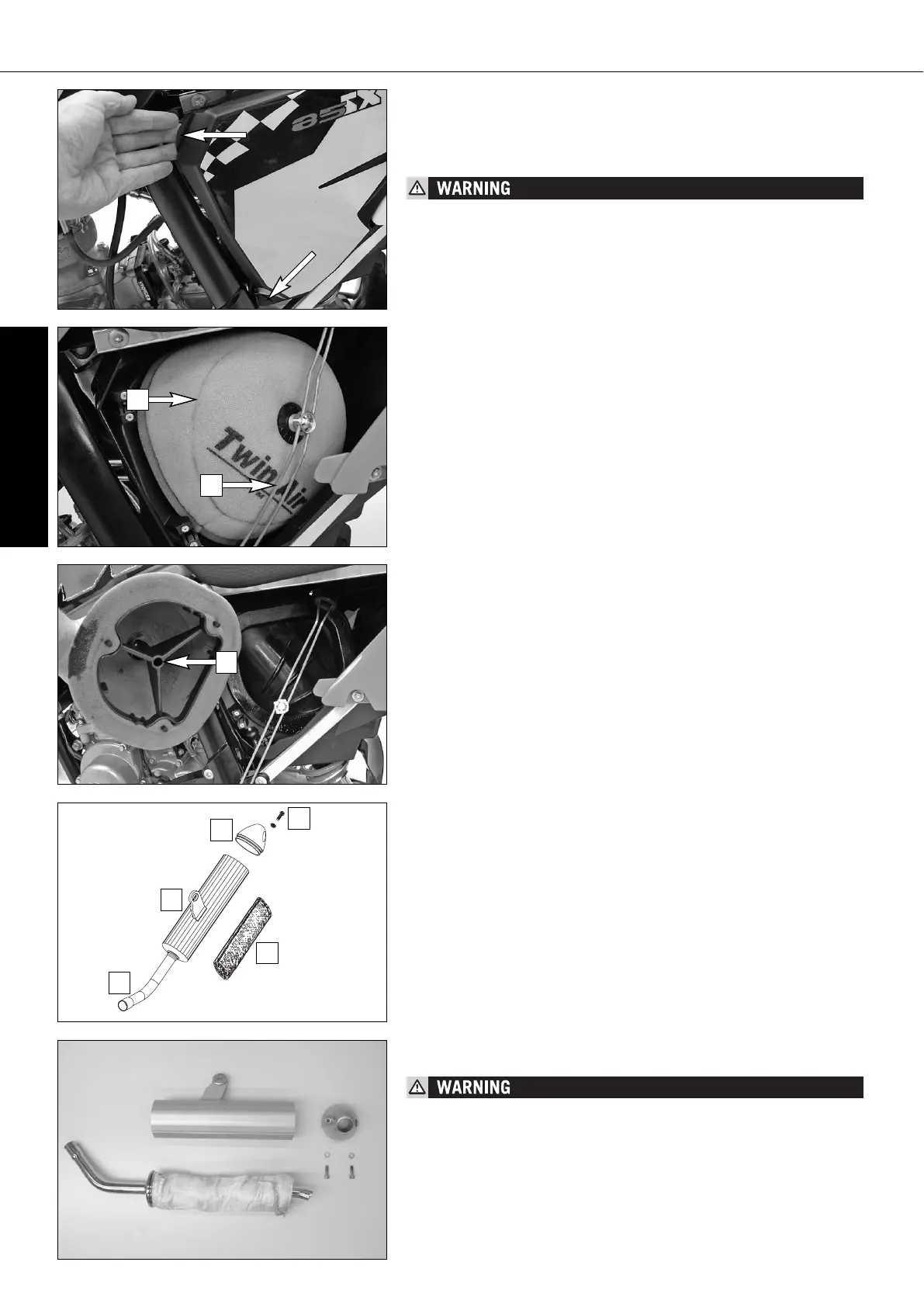 The exhaust system becomes very hot while the motorcycle is running. To avoid