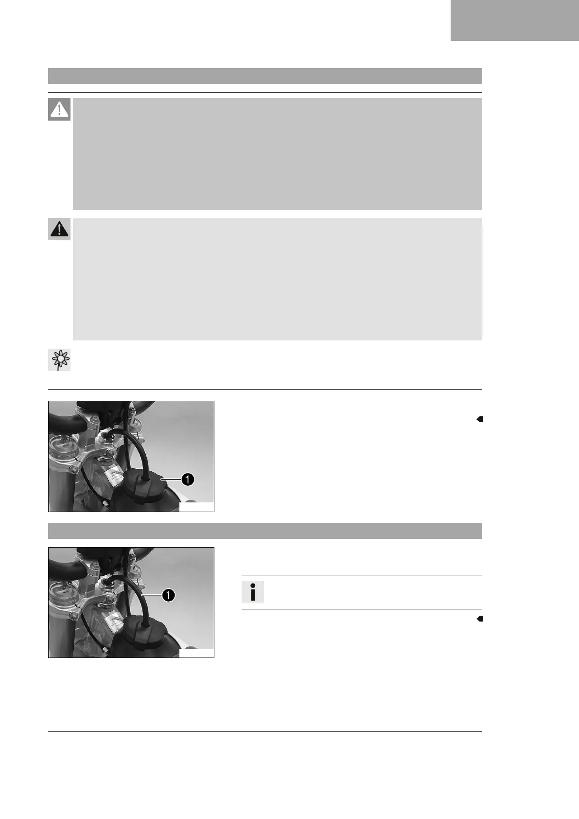 – Mount the fuel tank filler cap and turn it clockwise until the