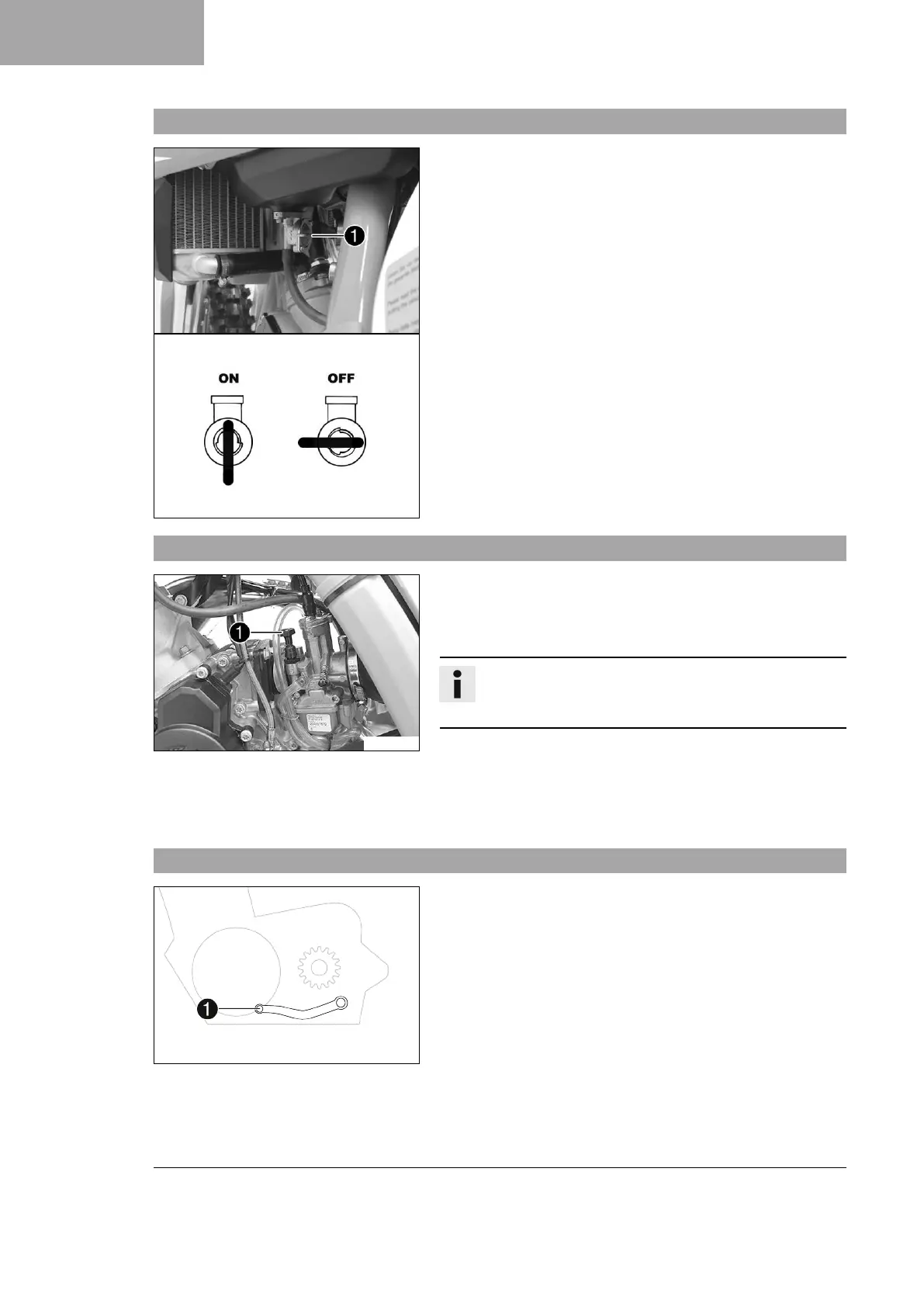 • Open fuel supply ON – Fuel can flow from the fuel tank to the