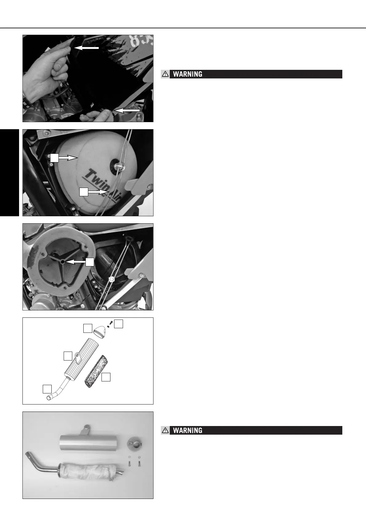 The exhaust system becomes very hot while the motorcycle is running. To avoid