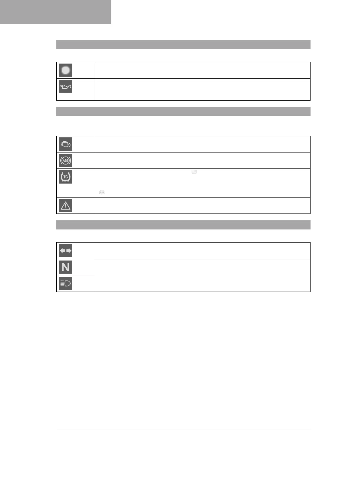 The oil pressure warning lamp lights up red – The oil pressure is too low. Stop immediately,
