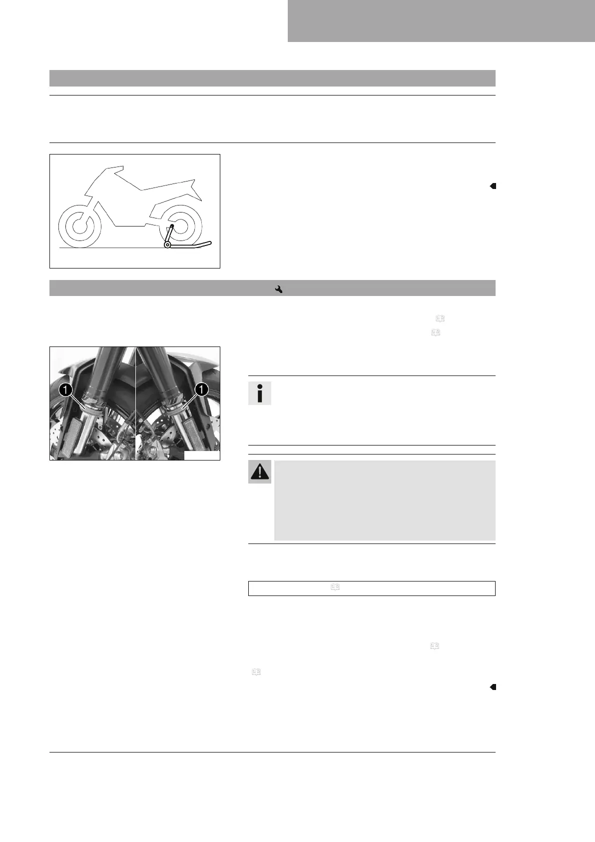 – Raise the motorcycle with the rear lifting gear. ( p. 64)