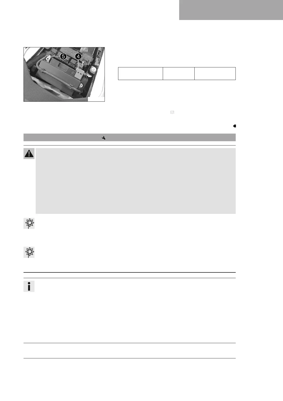 Environmental hazard 12 V batteries contain environmentally hazardous materials.