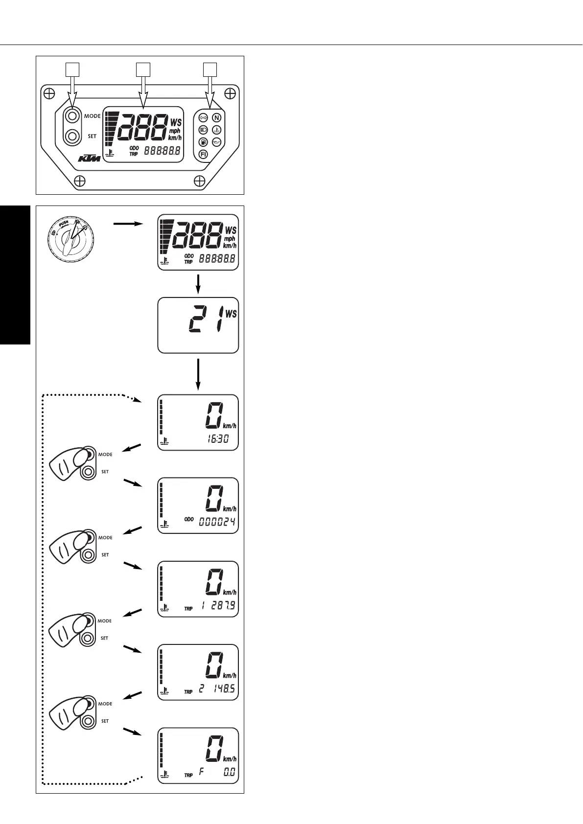 Use the MODE and SET [1] button to change the display and the basic set-