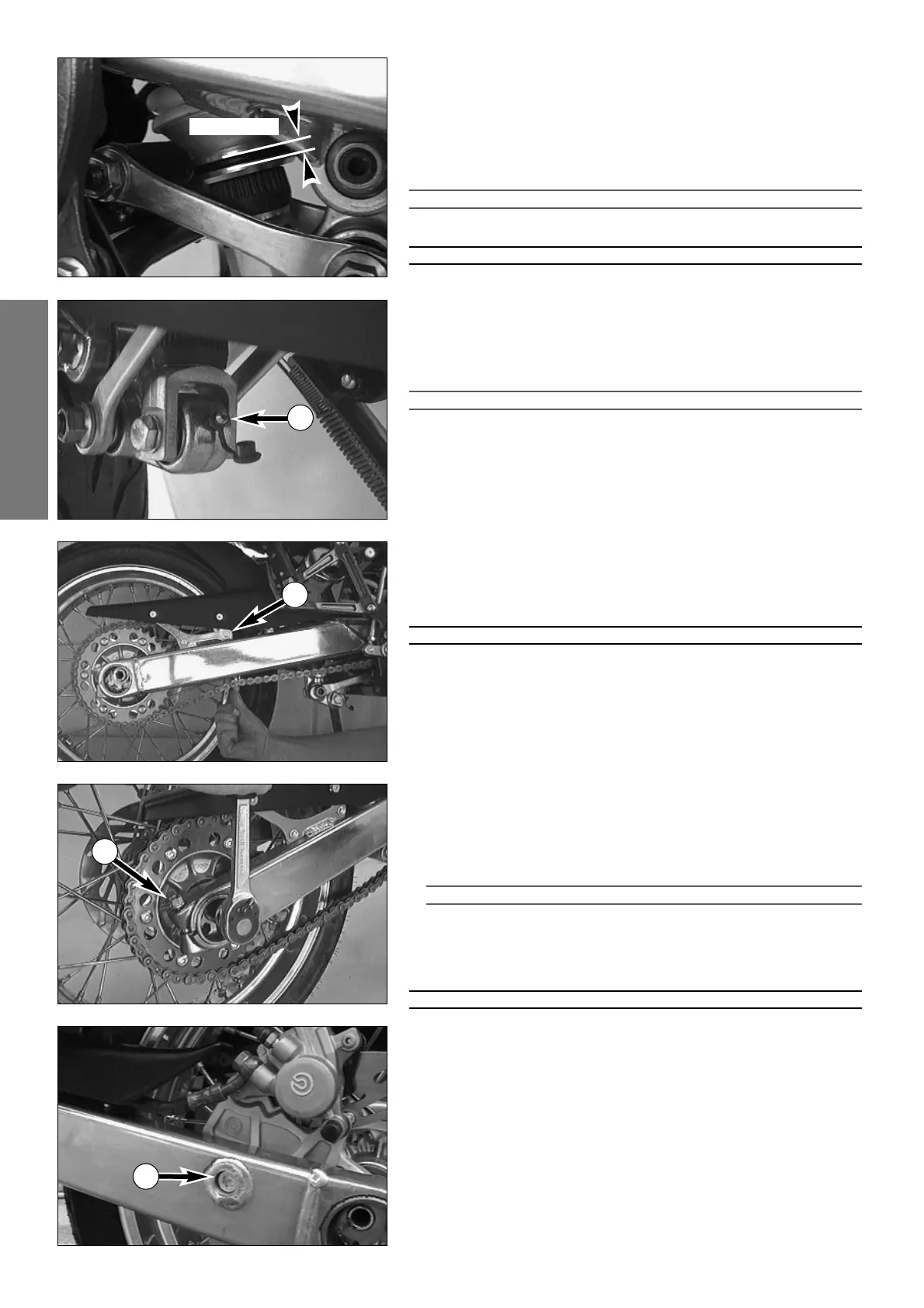 – Loosen hexagon nuts 3 on the left and right swingarm fists.