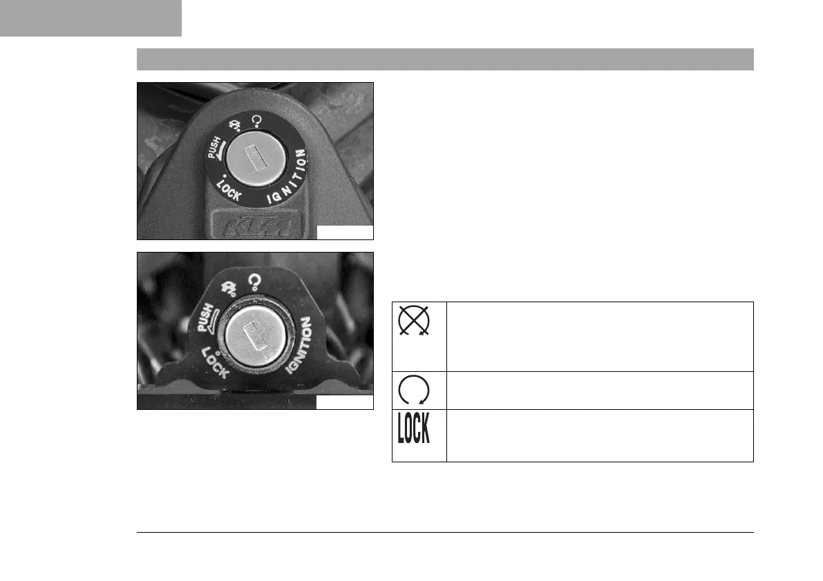Steering locked – In this position, the ignition circuit
