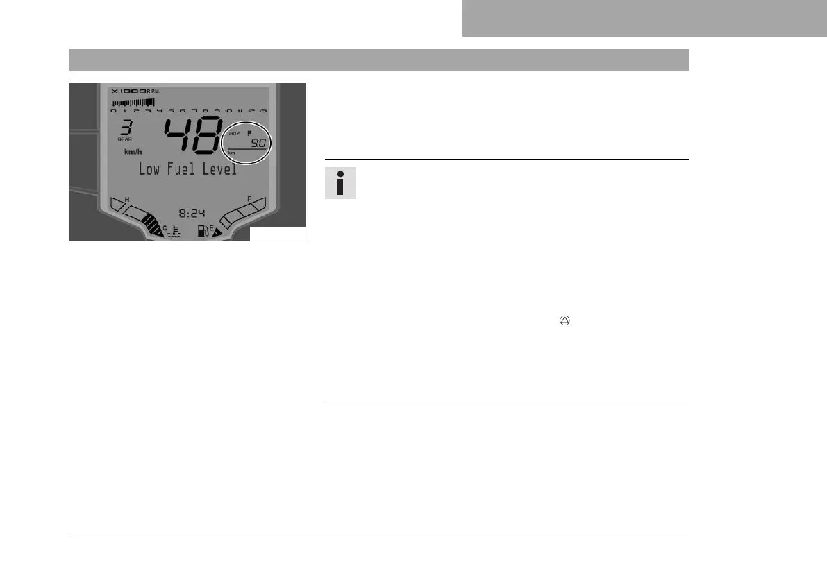 TRIP F shows the distance traveled since the fuel reserve level was
