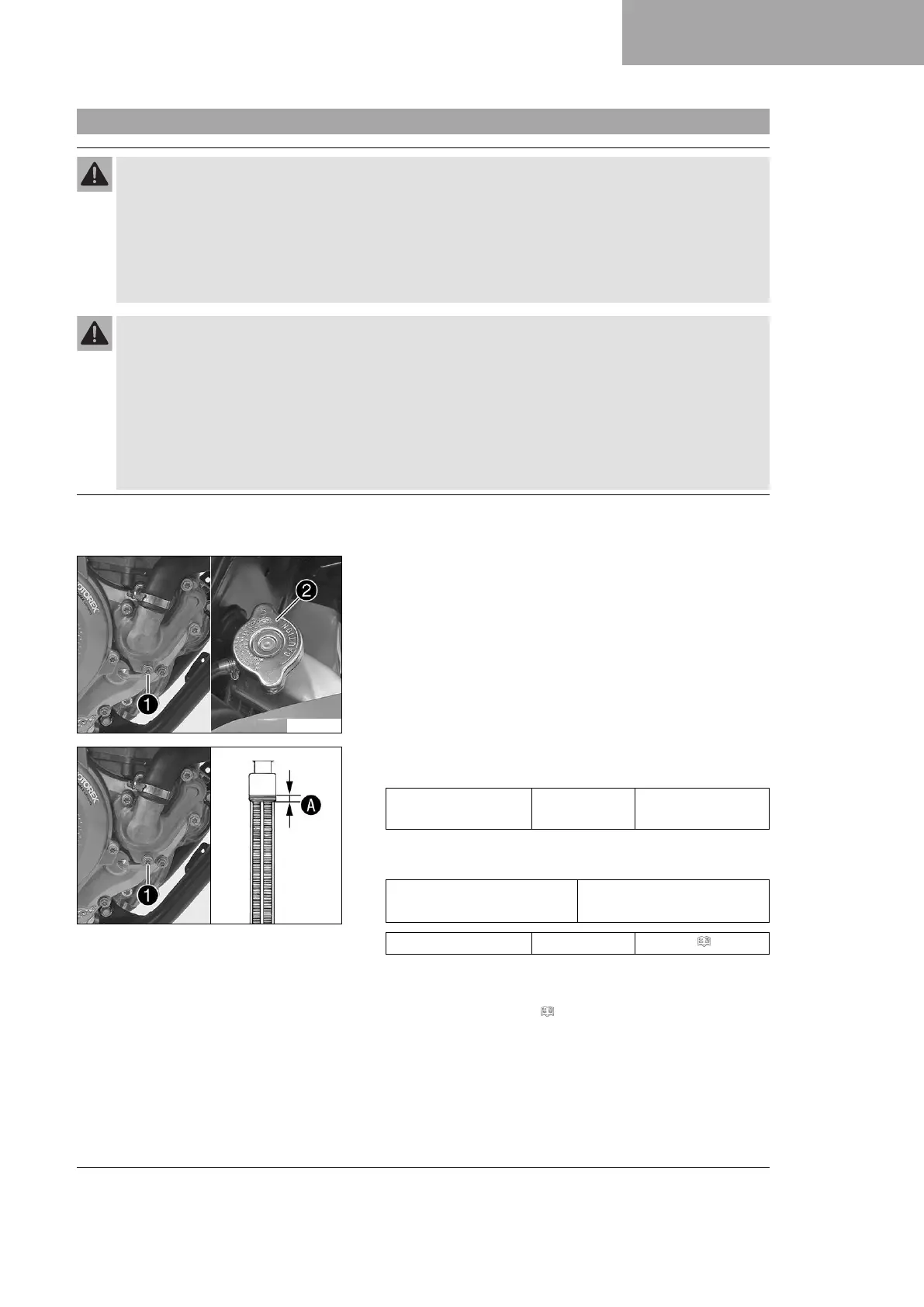 Danger of scalding During motorcycle operation, the coolant gets very hot and is under pressure.