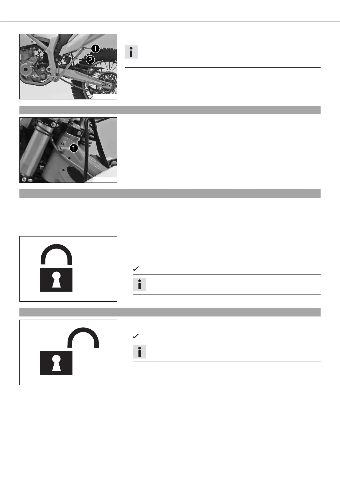 The steering lock is used to lock the steering. Steering, and therefore riding, is no