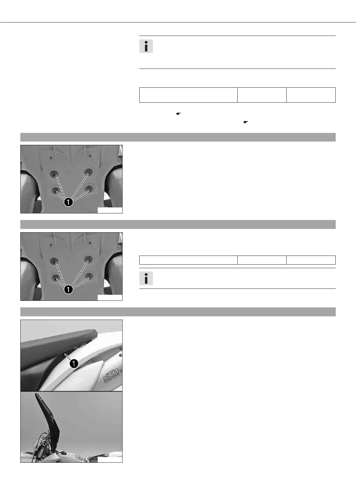 – Position the front fender. Mount and tighten screws 1.