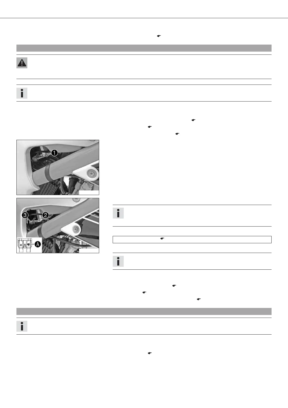 – Raise the motorcycle with the lift stand. ( p. 37)