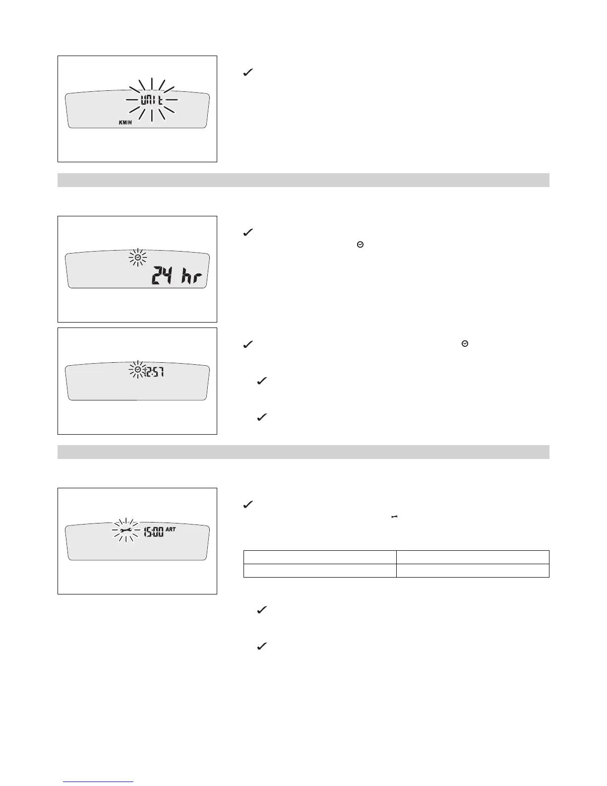 – Press one of the buttons to select UNIT for the speed in kilometers KM/H or miles