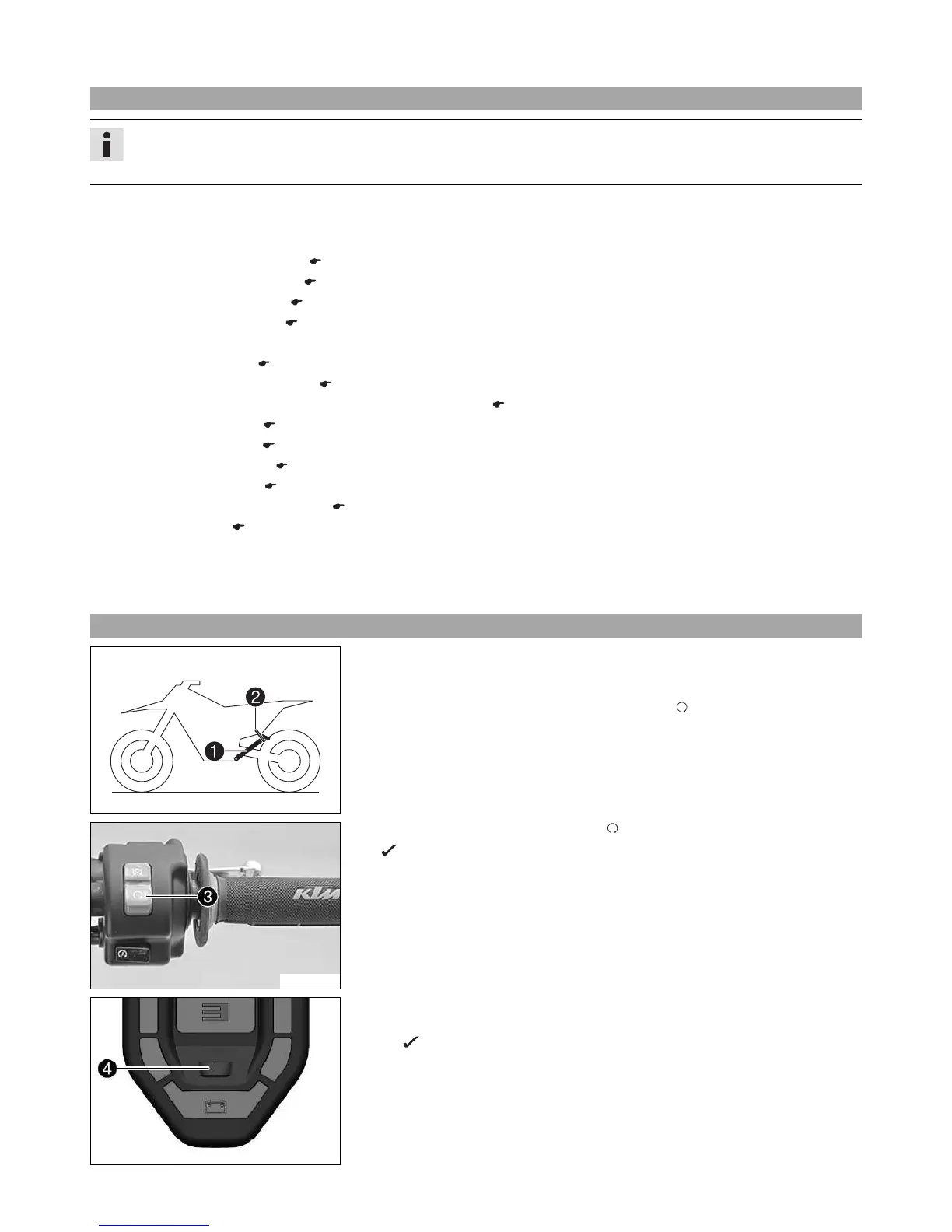 – Check the throttle grip, main switch, KTM PowerPack, multifunction display and electric motor for external damage.