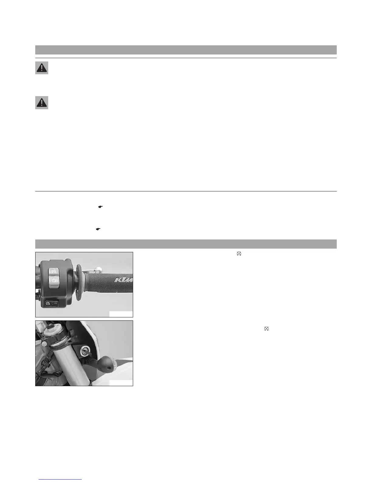 – Do not touch any parts such as the radiator, motor, shock absorber, or brake system before these parts have cooled down.