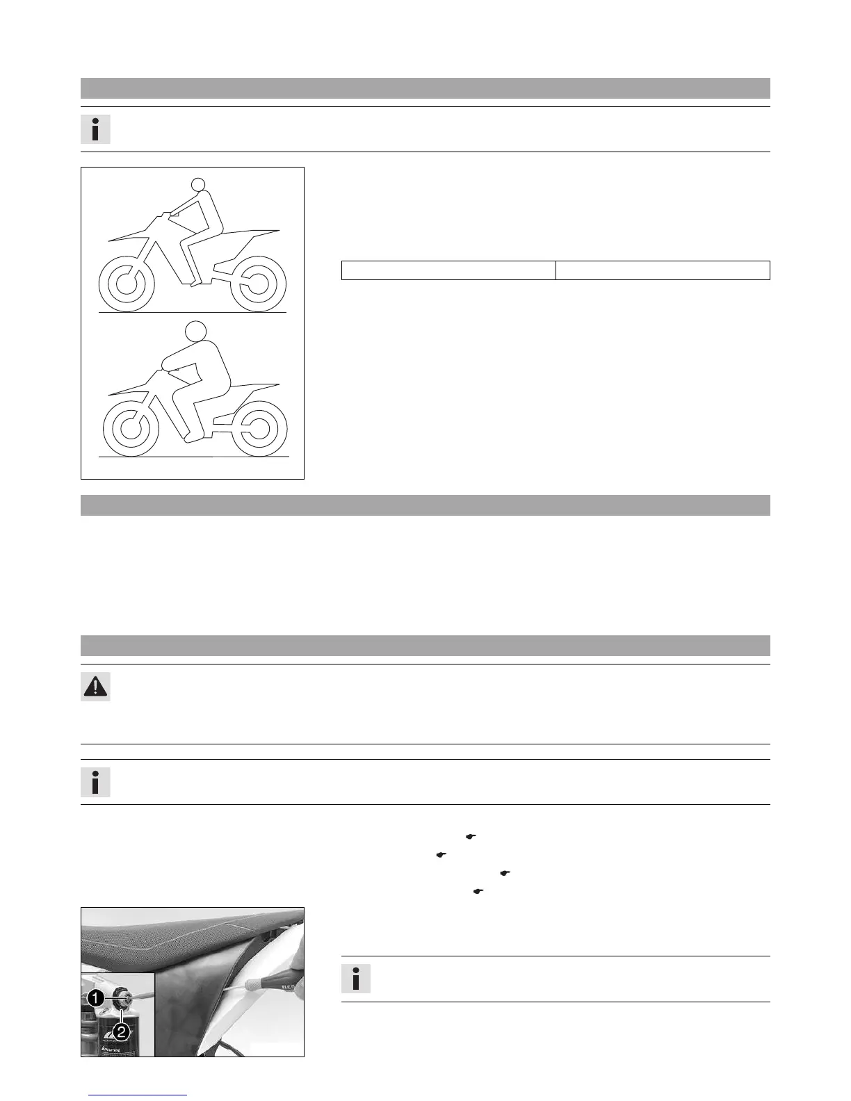 – For optimal motorcycle riding characteristics and to avoid damage to forks, shock