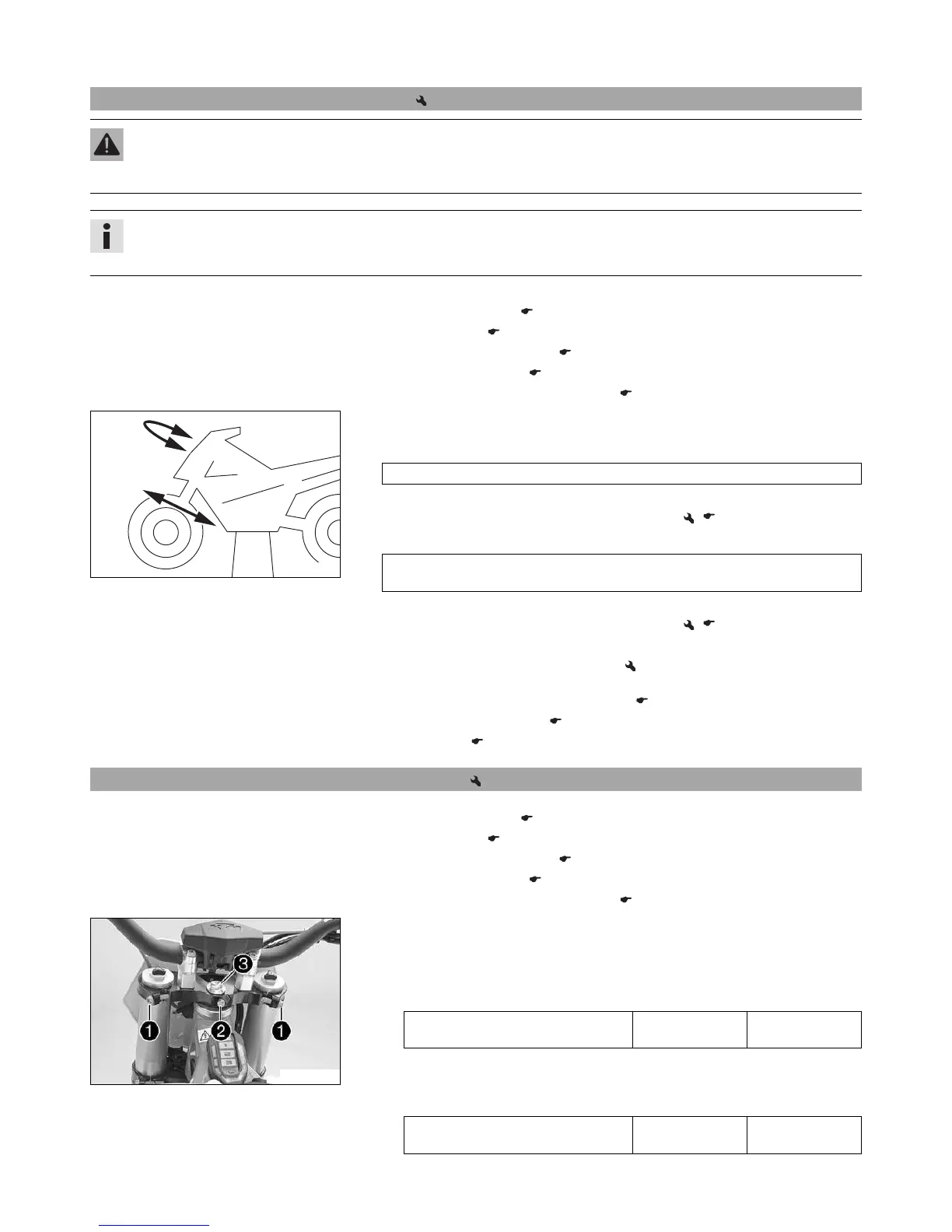 – Adjust the steering head bearing play without delay. (Your authorized KTM workshop will be glad to help.)