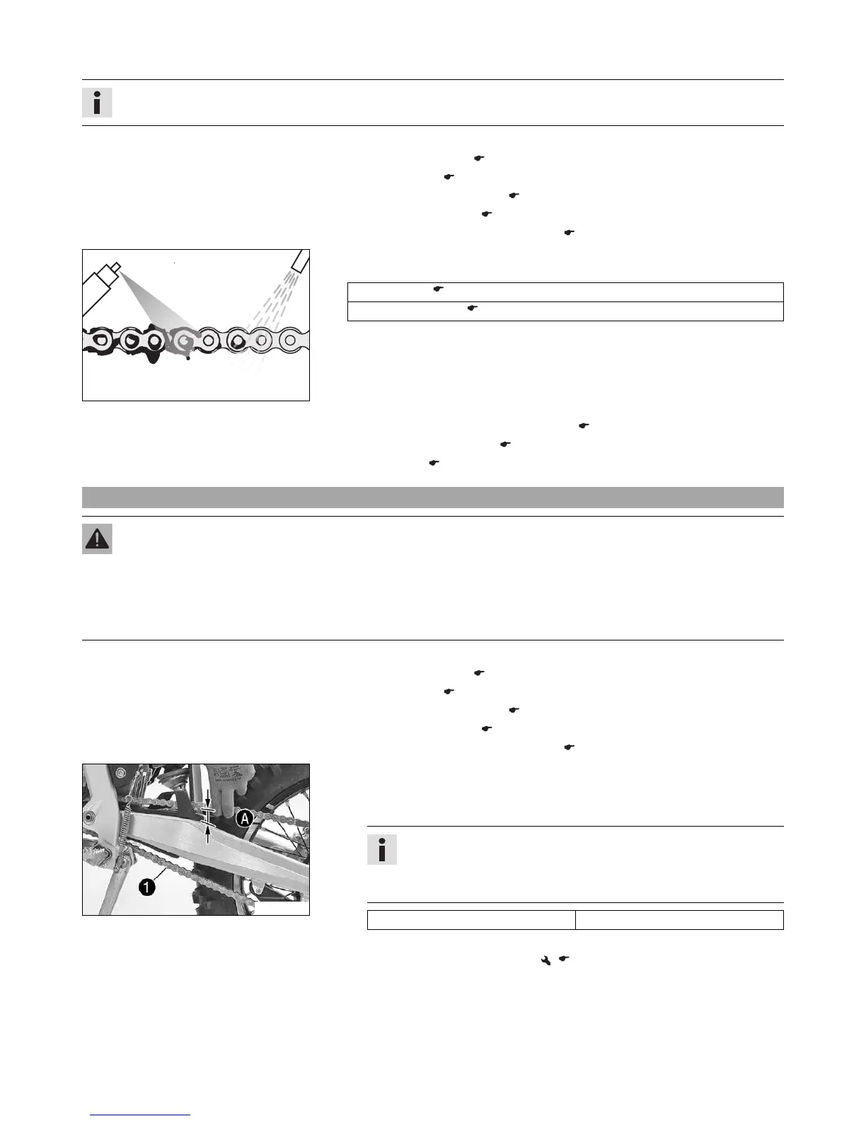 – If the chain is too taut, the components of the secondary power transmission (chain, chain pinion, rear sprocket, bearings