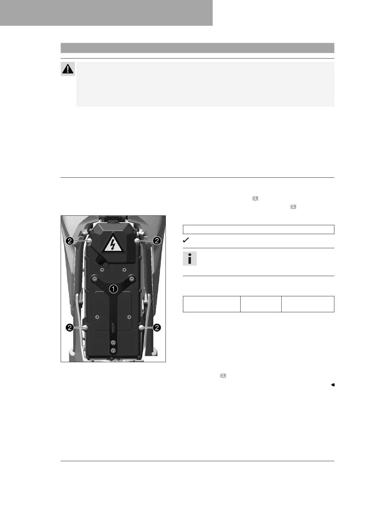 – Make sure that nobody is pinched when the KTM PowerPack is removed or installed.