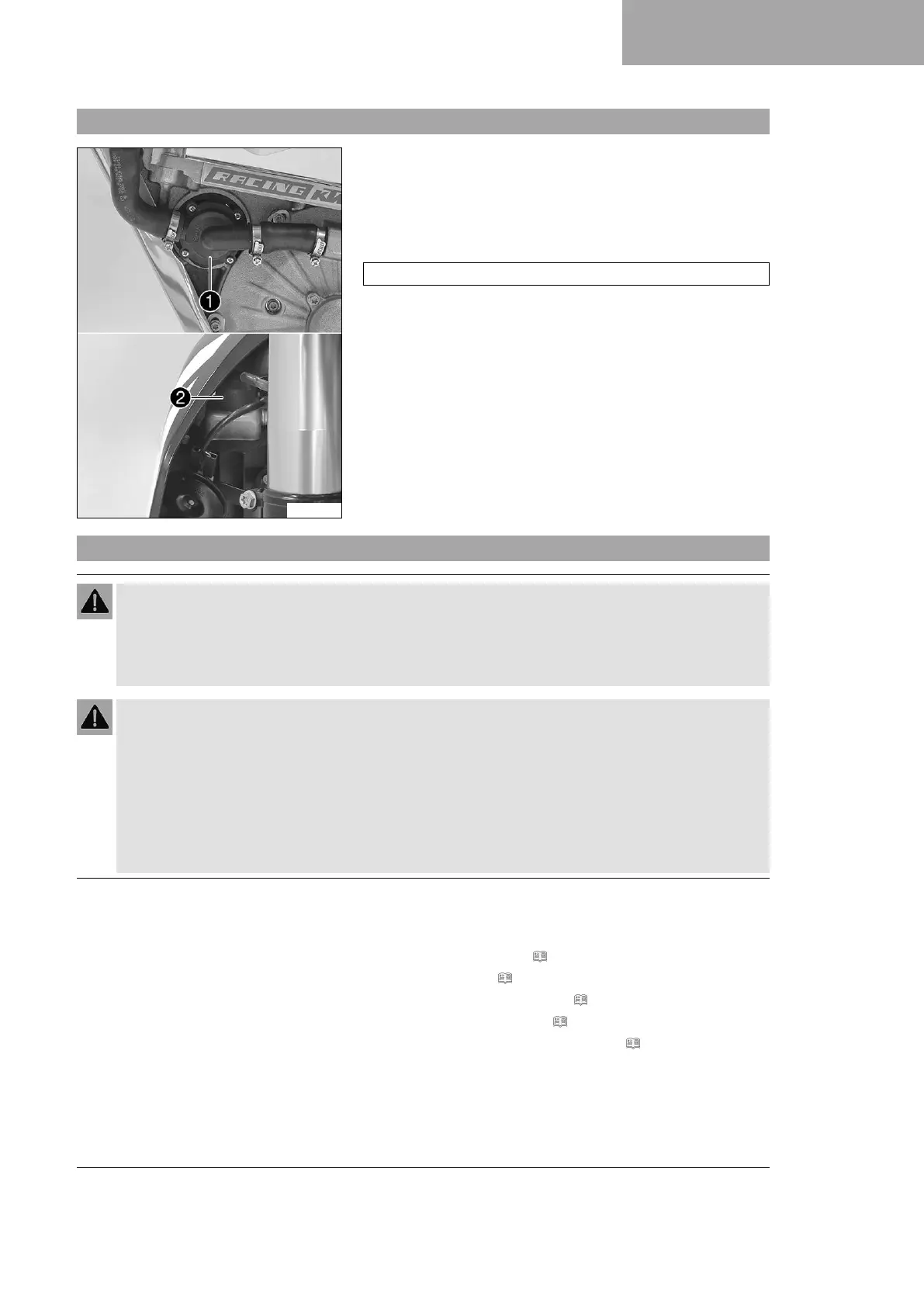 Danger of scalding During motorcycle operation, the coolant gets very hot and is under pressure.