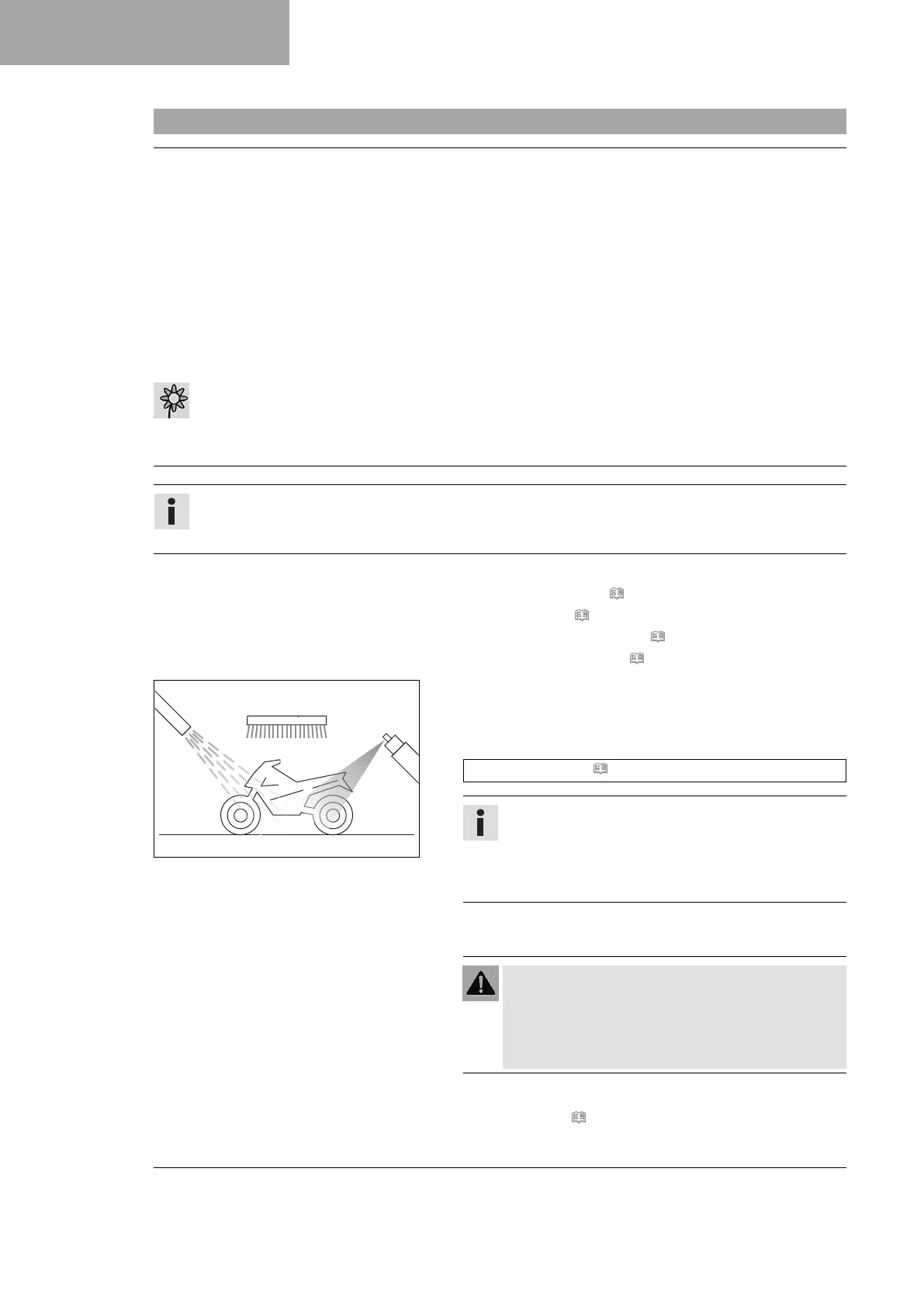 – Spray heavily soiled parts with a normal commercial motorcy-