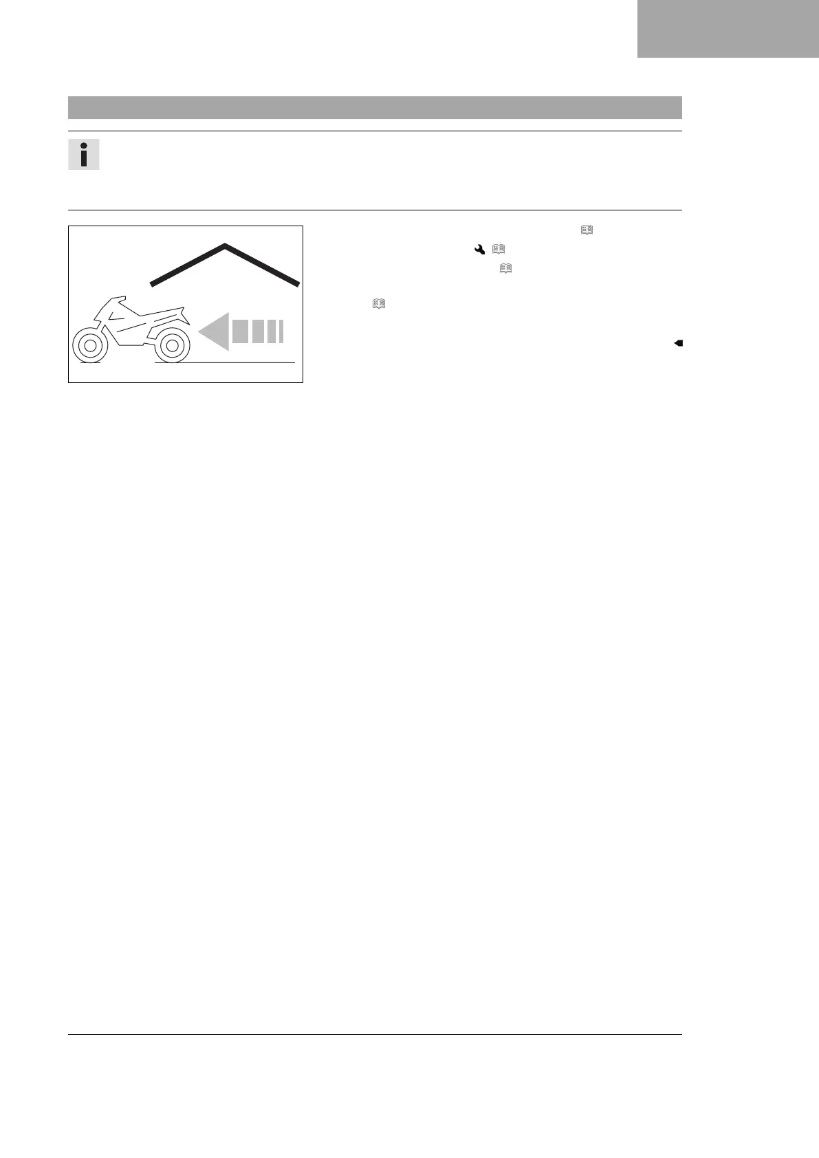 – Remove the motorcycle from the lift stand. ( p. 57)