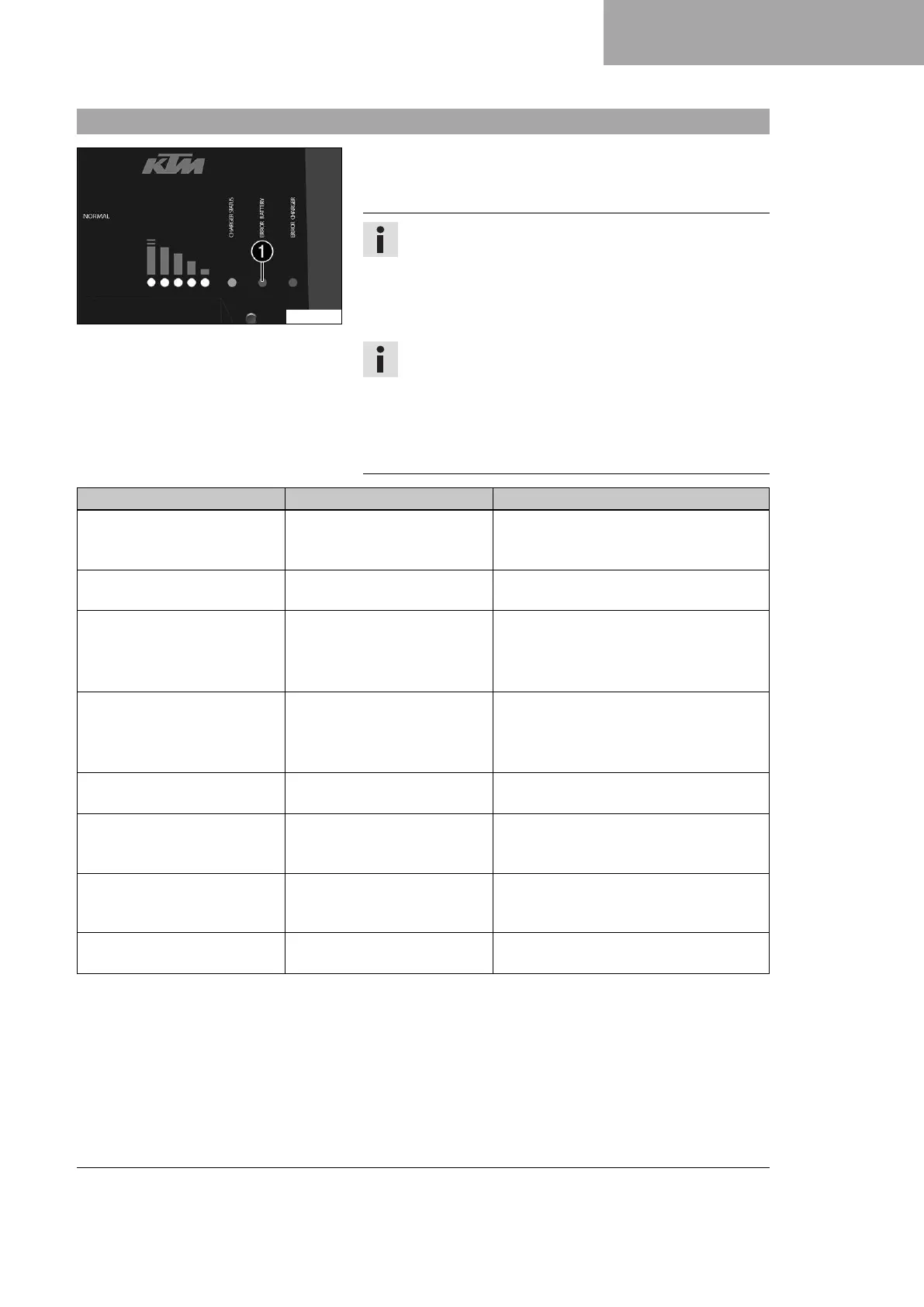 23.3 Troubleshooting of the KTM PowerPack when connected to the battery charger