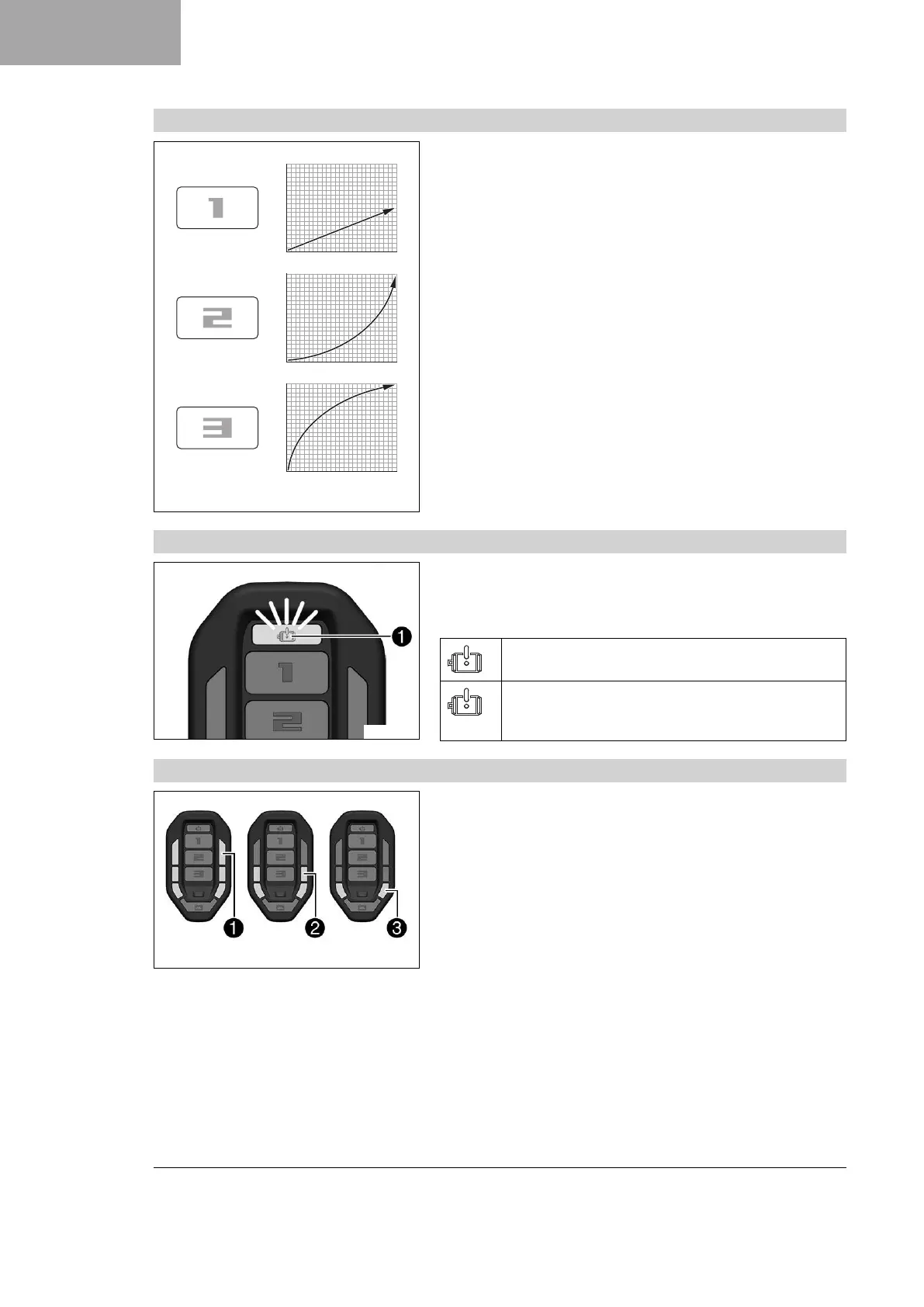 Red driving mode displays with the numbers 1, 2 or 3 show the
