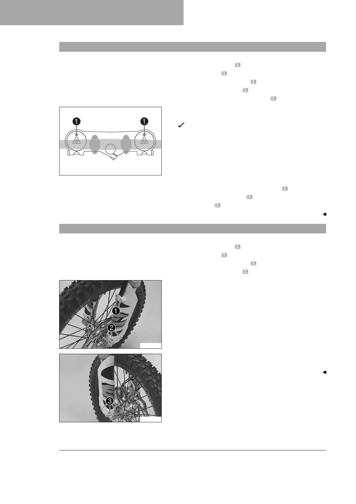 – Raise the motorcycle with a lift stand. ( p. 57)