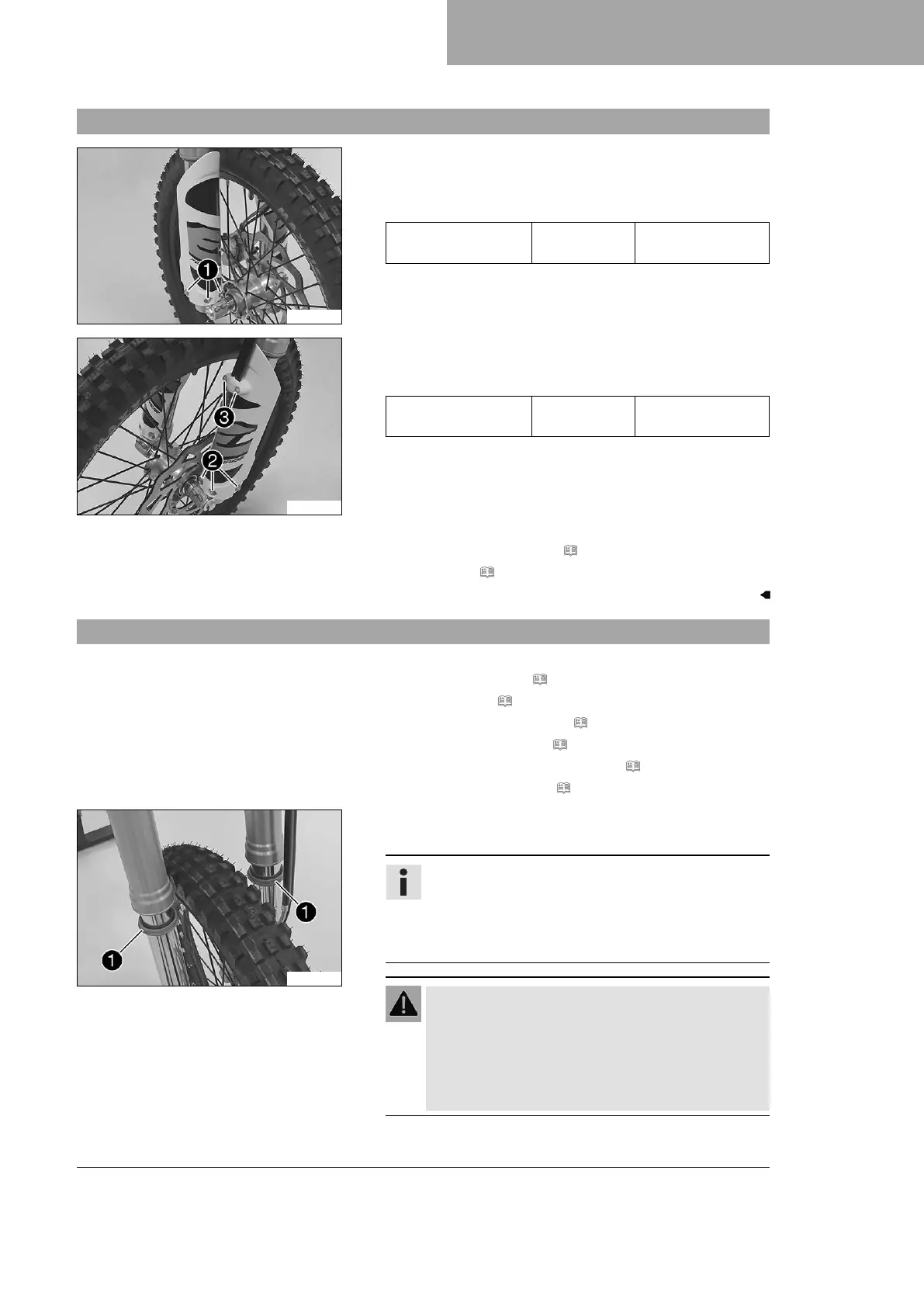 – Raise the motorcycle with a lift stand. ( p. 57)