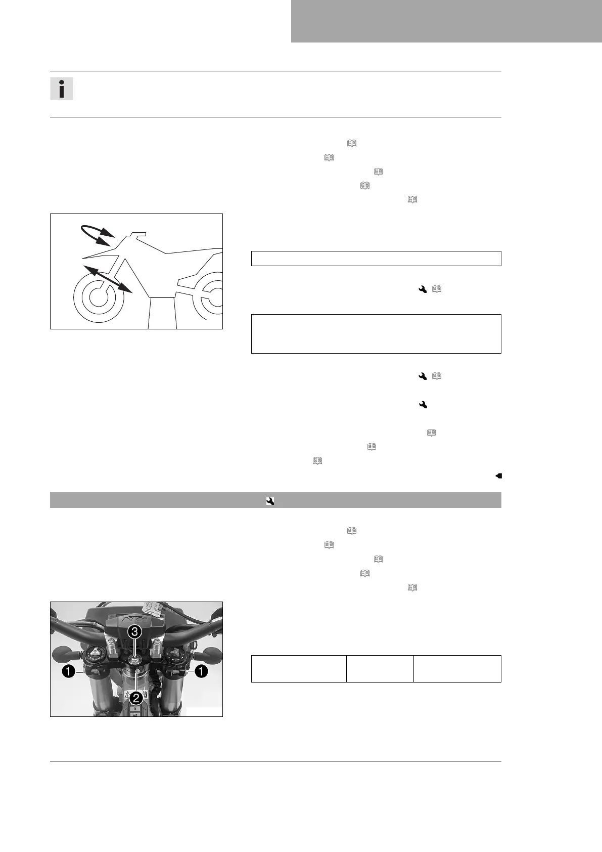 – Raise the motorcycle with a lift stand. ( p. 57)