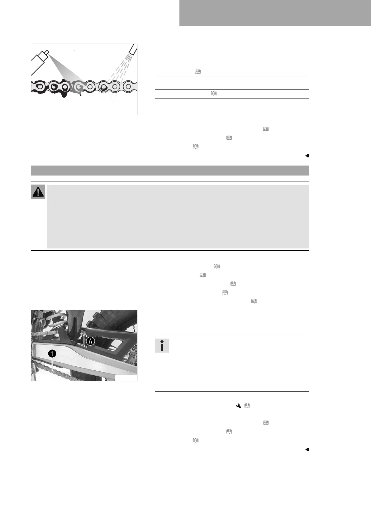 – If the chain is too taut, the components of the secondary power transmission (chain, chain pinion,
