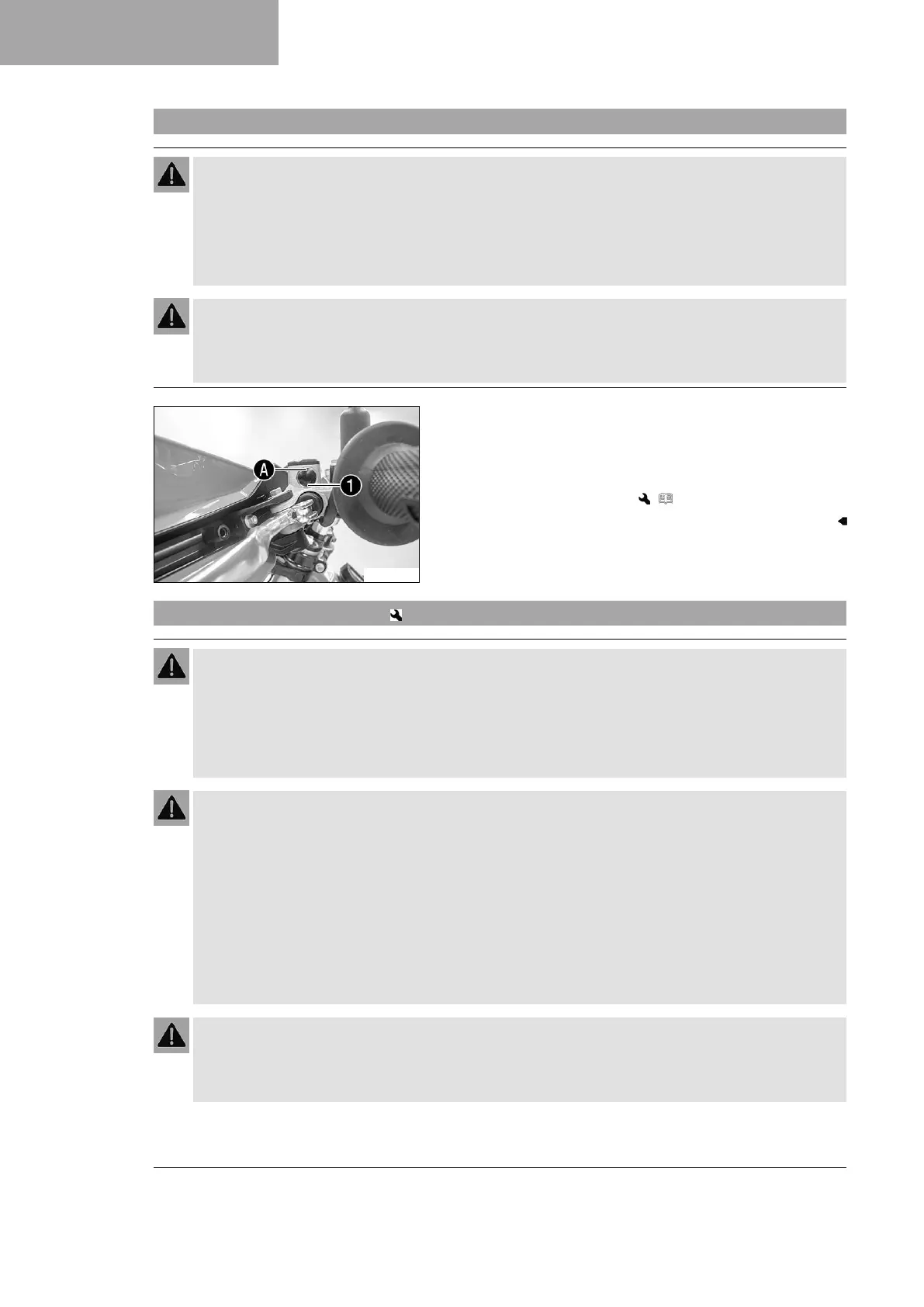 – Check the brake system and do not continue riding until the problem is eliminated. (Your authorized