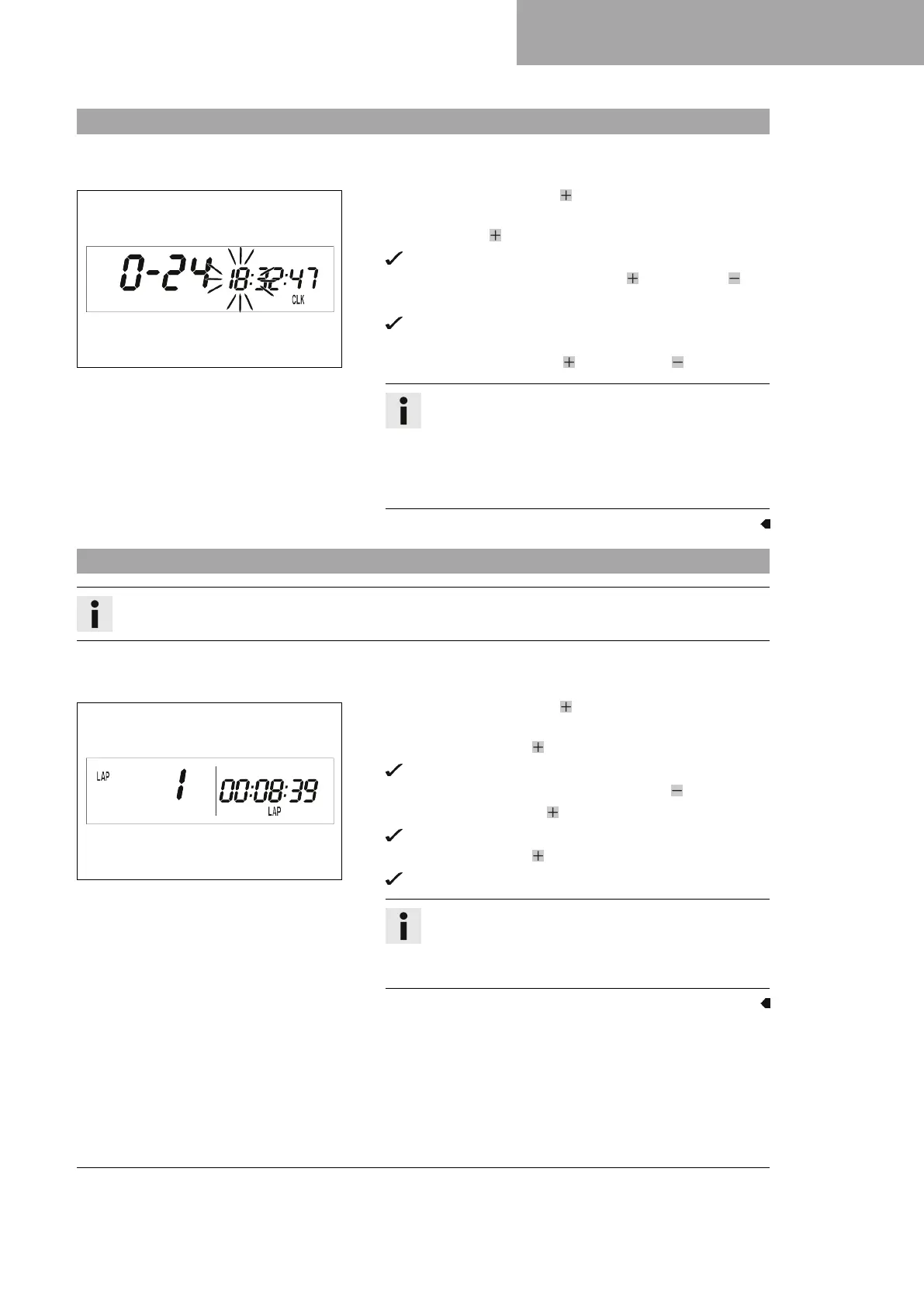 – Repeatedly press the button briefly until LAP appears at the