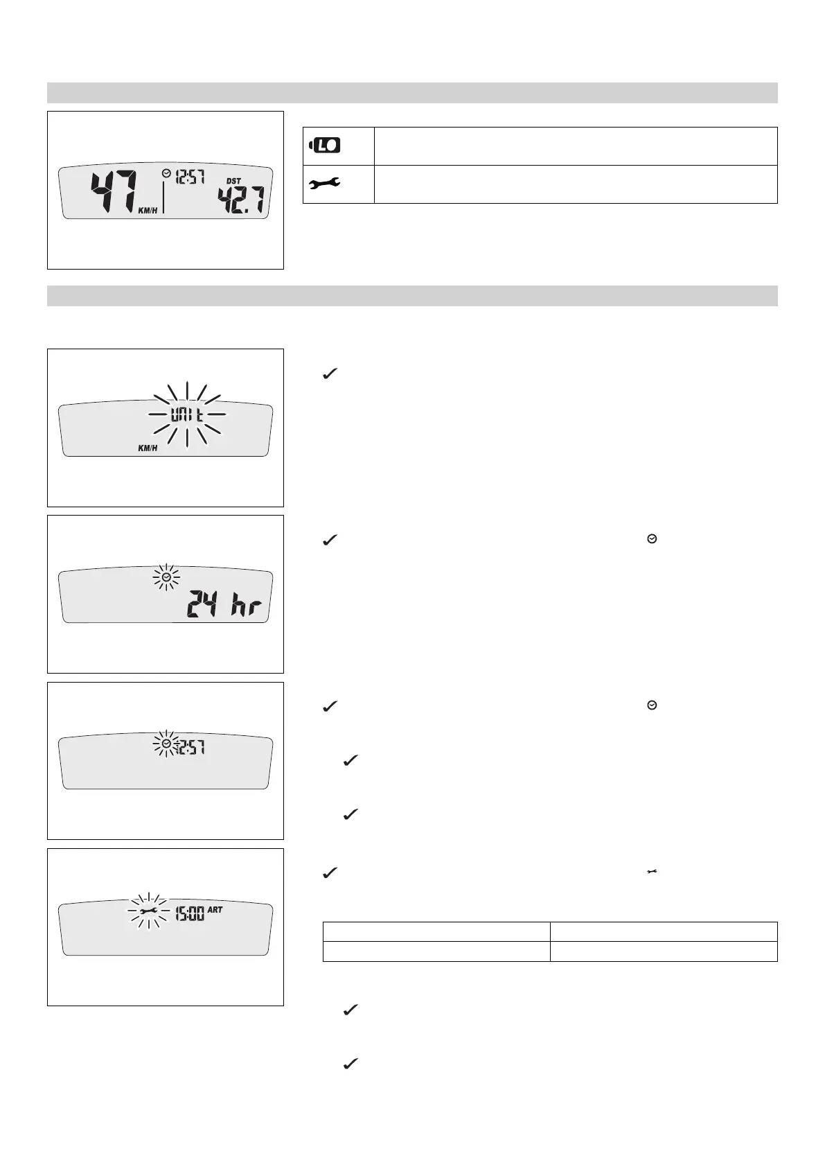 – Press one of the buttons to select UNIT for the speed in kilometers KM/H or miles