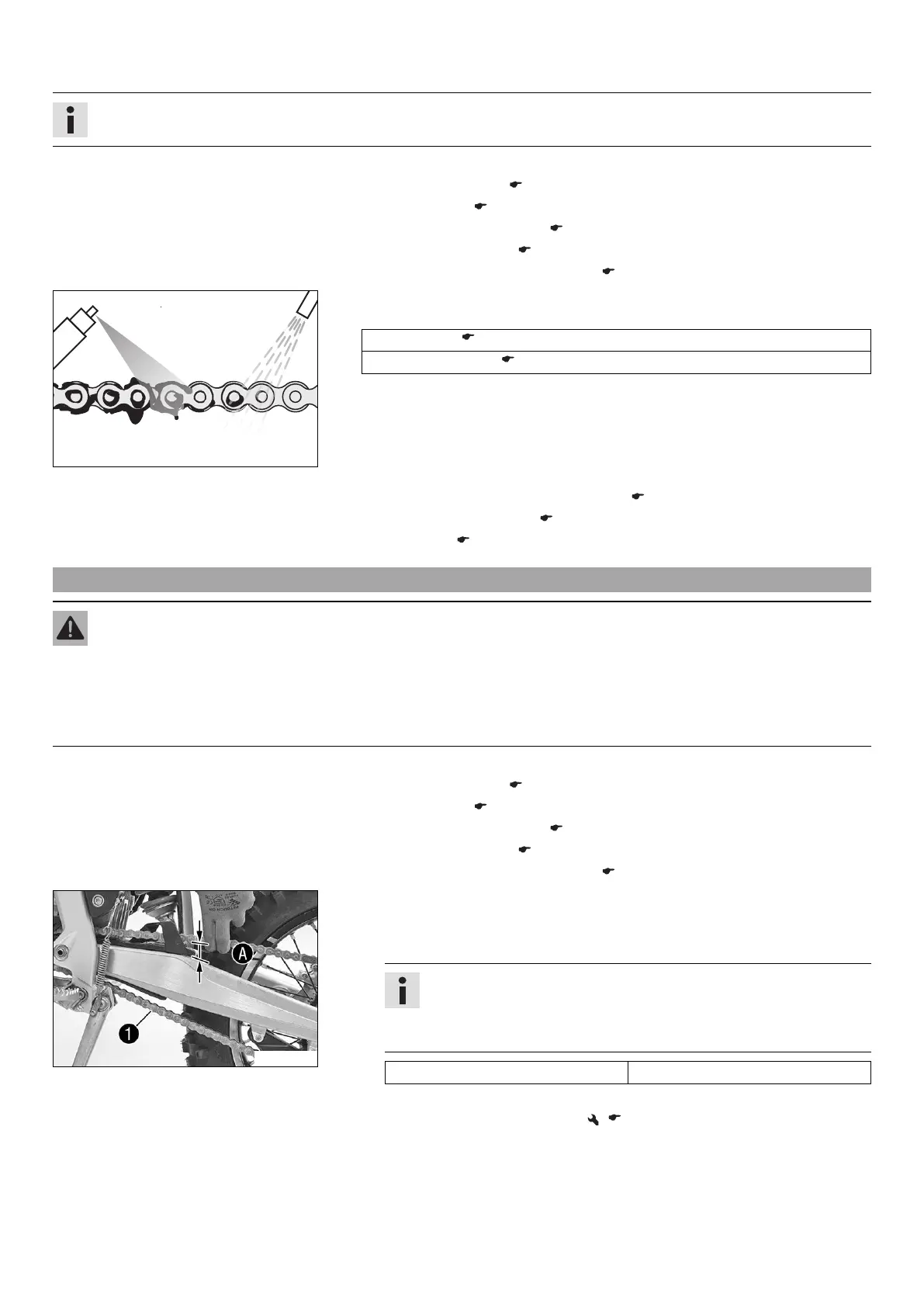 – If the chain is too taut, the components of the secondary power transmission (chain, chain pinion, rear sprocket, bearings